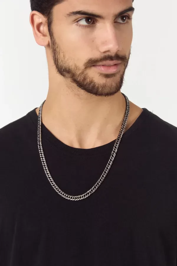 Collar PREMIUM importado de acero con apariencia brillante y diseño de eslabones.