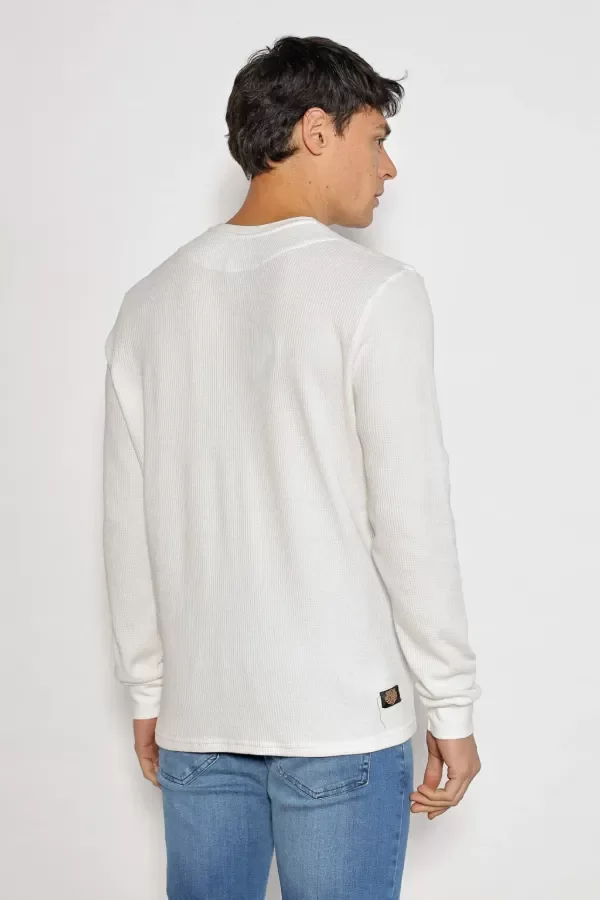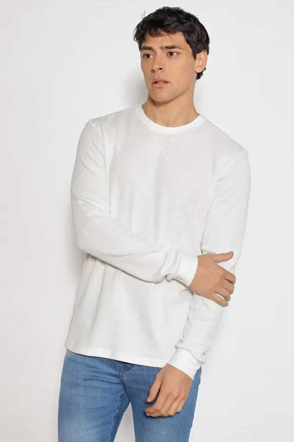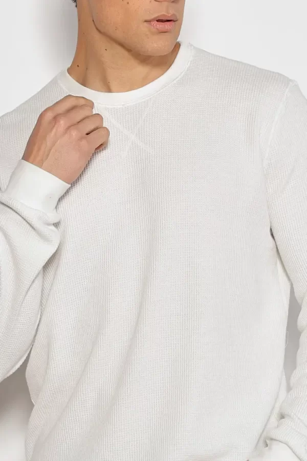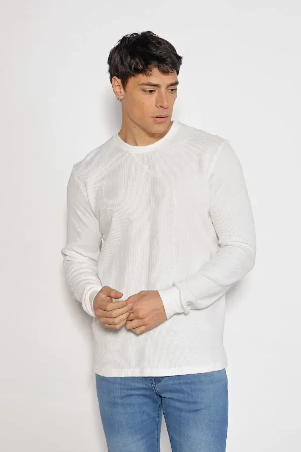 Buzo escote redondo con detalles de bordador al tono. Confeccionado en wafle puro algodón.