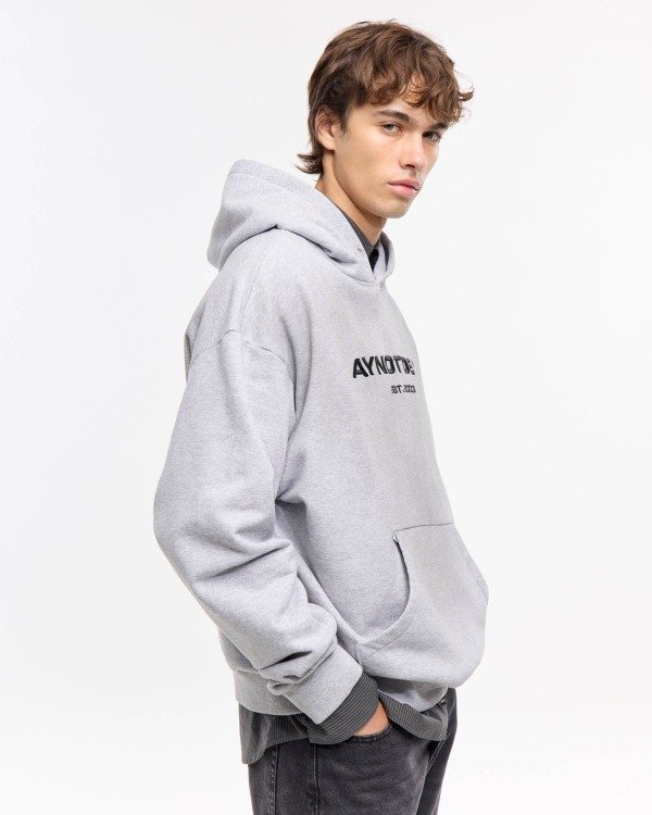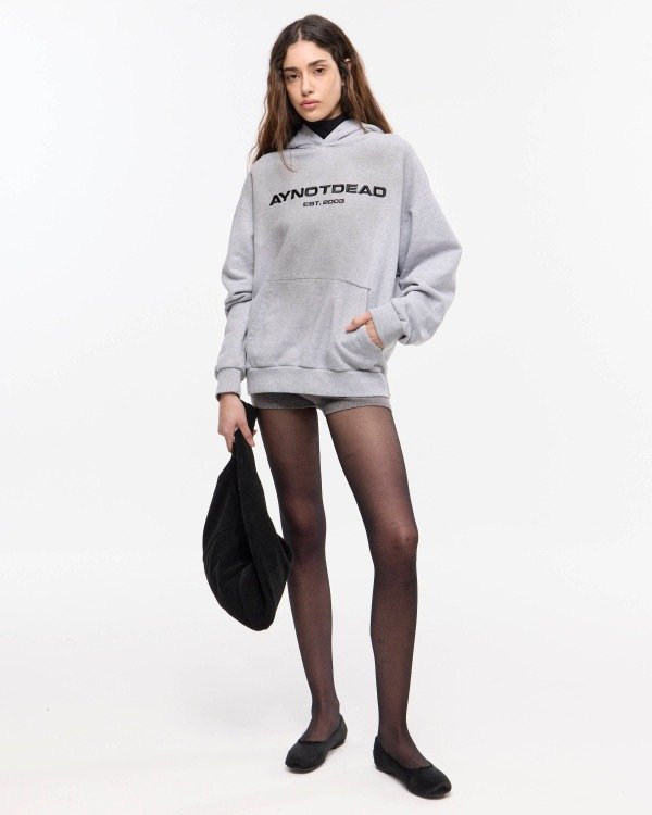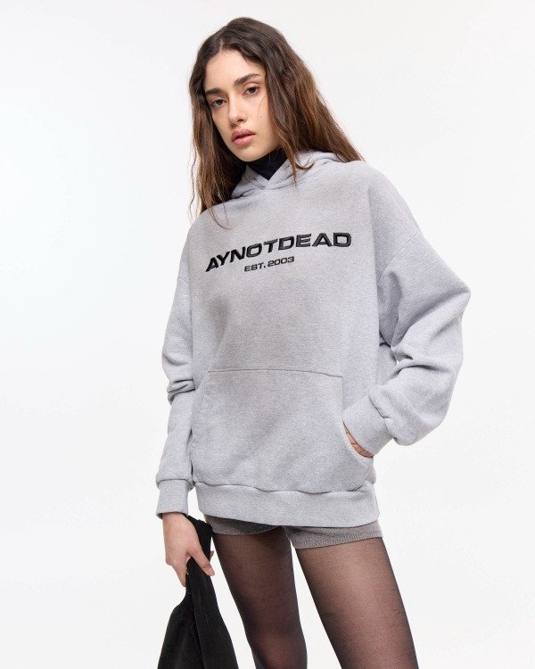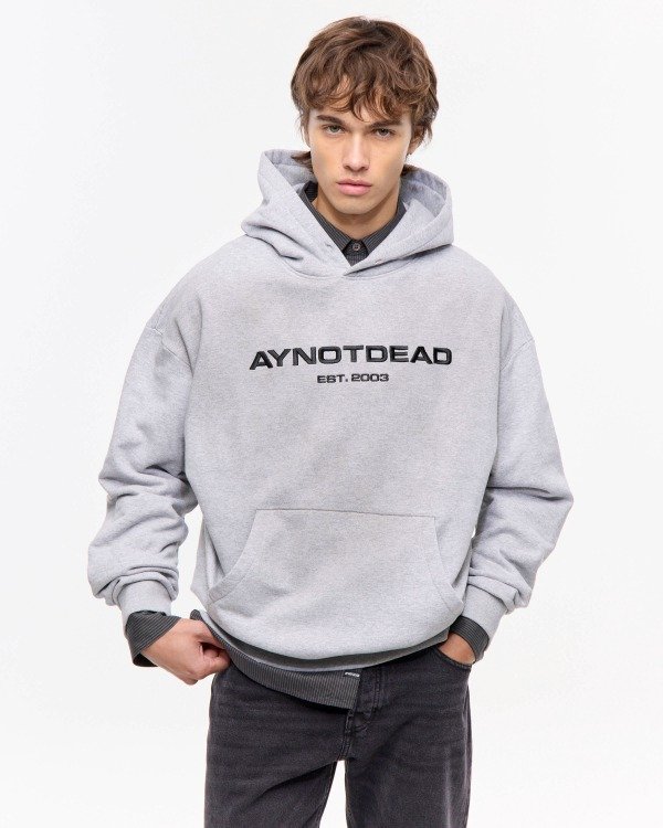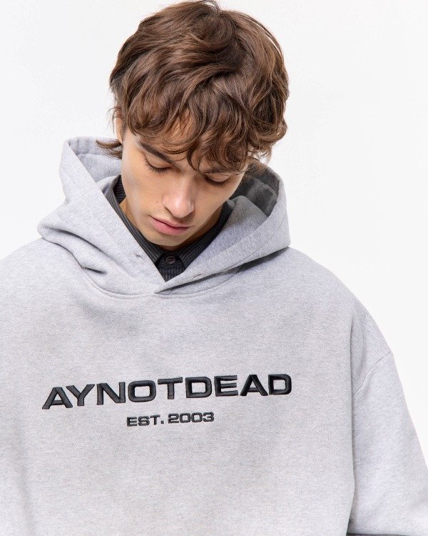 • Buzo con capucha y bolsillo canguro. De calce oversize en frisa con puños en complemento. Logo de marca "AY NOT DEAD EST.2003" bordado con alma en delantero.