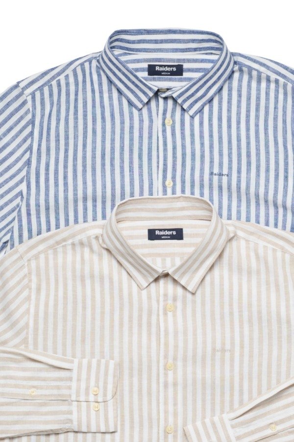 Descripción: Camisa de lino rayada, manda