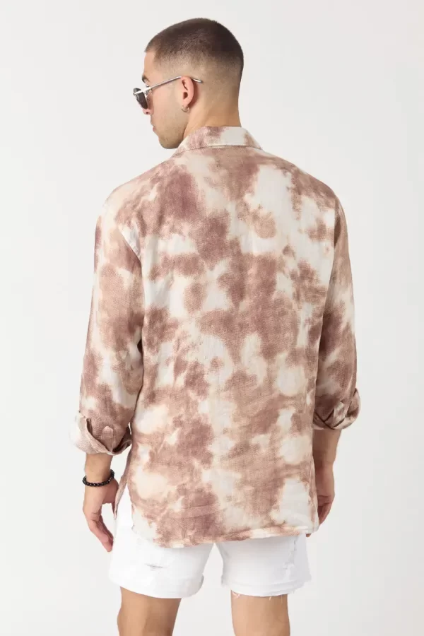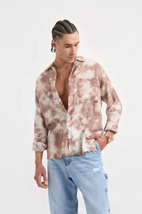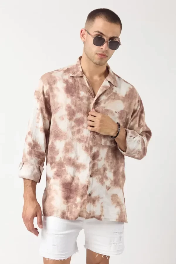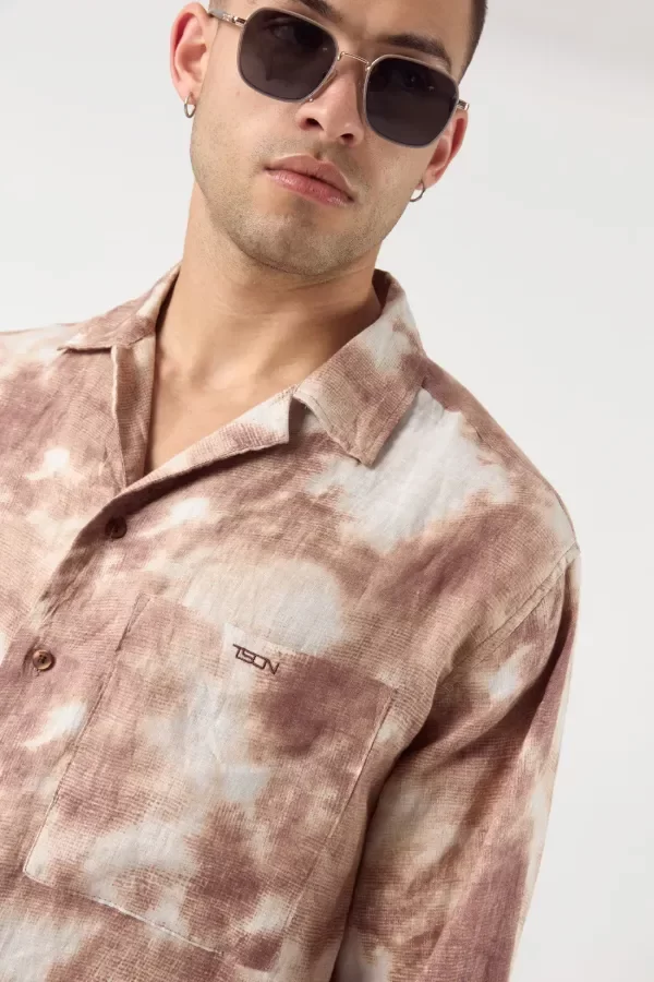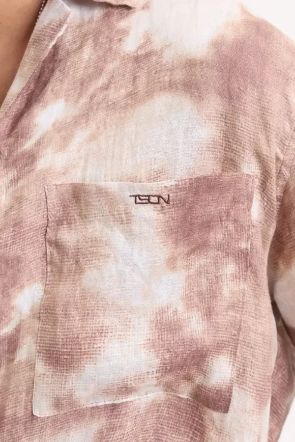 Camisa lijera de corte relaxed fit confeccionado con 100% lino estampado. Cuello bowling y detalle de tajos en laterales. Identificación de marca con bordado a contratono en bolsillo izquierdo.