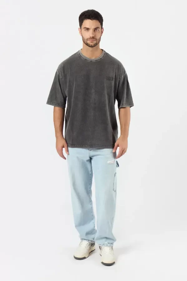 Remera amplia de corte chill fit, cuello redondo y mangas cortas, también amplias. Terminación de ruedo recto. Con estampa TASCANI en el pecho, del lado izquiero, y estampa artística en la espalda. Confeccionada en jersey, tejido de punto 100% algodón compacto con estructura, con proceso personalizado.