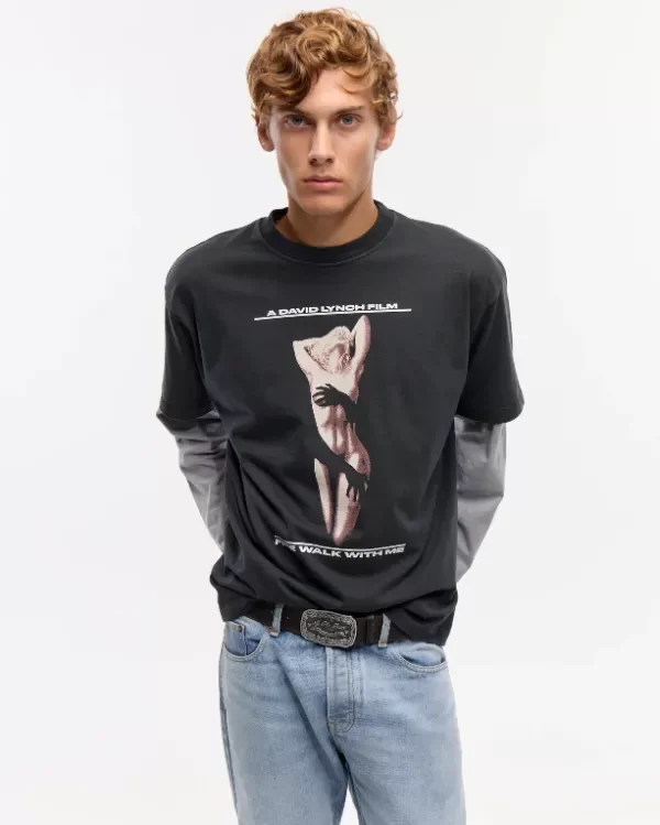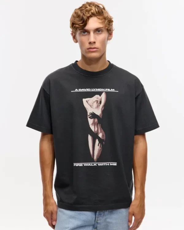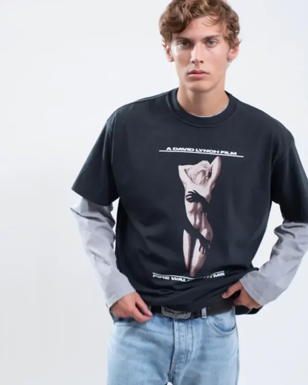 Remera manga corta de cuello redondo y calce oversize en jersey de algodón. Teñido y gastado en prenda. Estampa en delantero y en espalda. Posee grifa de marca en la espalda.