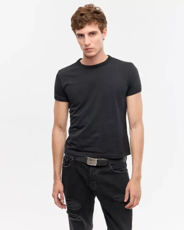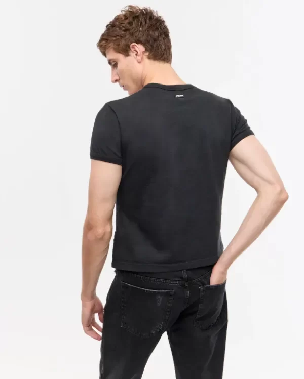 Remera manga corta con collareta en escote y en puños de manga. Calce fitted en jersey de algodón. Posee grifa de marca en espalda.