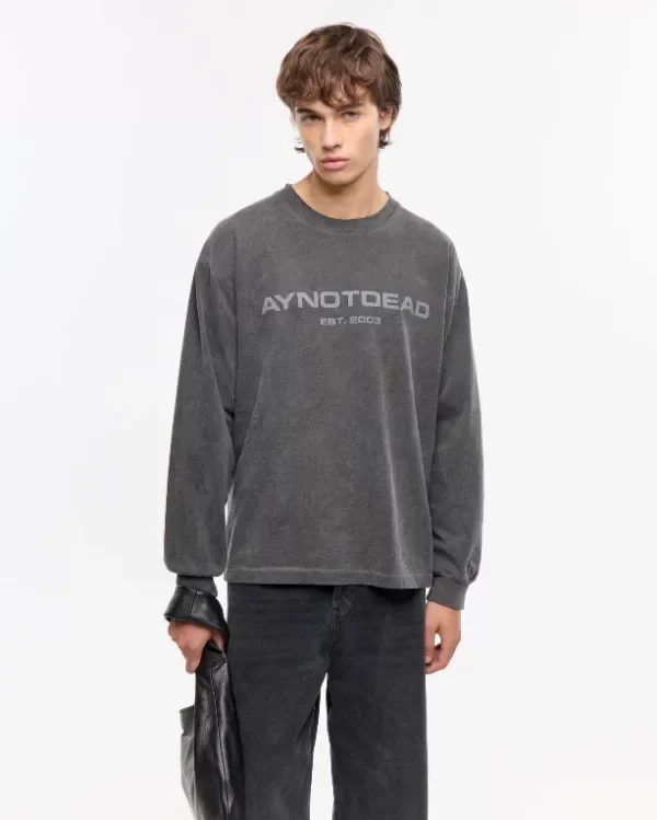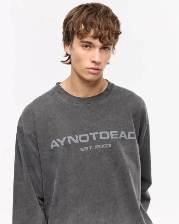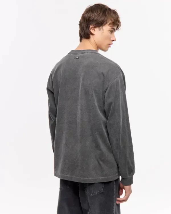 Remera manga larga de cuello redondo y calce oversize en jersey de algodón pesado. Teñido y gastado fade en prenda. Logo estampado a contratono en delantero. Posee grifa de marca en espalda.
