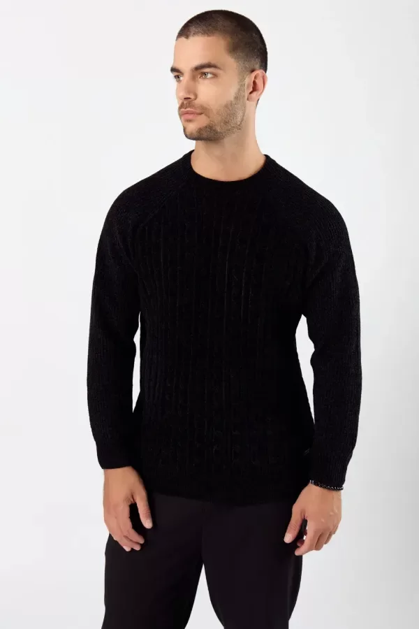 Sweater premium importado con hilado de tacto soft de chenille, manga larga. hilado con estructura y cambio de punto en la parte delantera y trasera. acabados en rib. chapita de comunicación cosida en delantero..