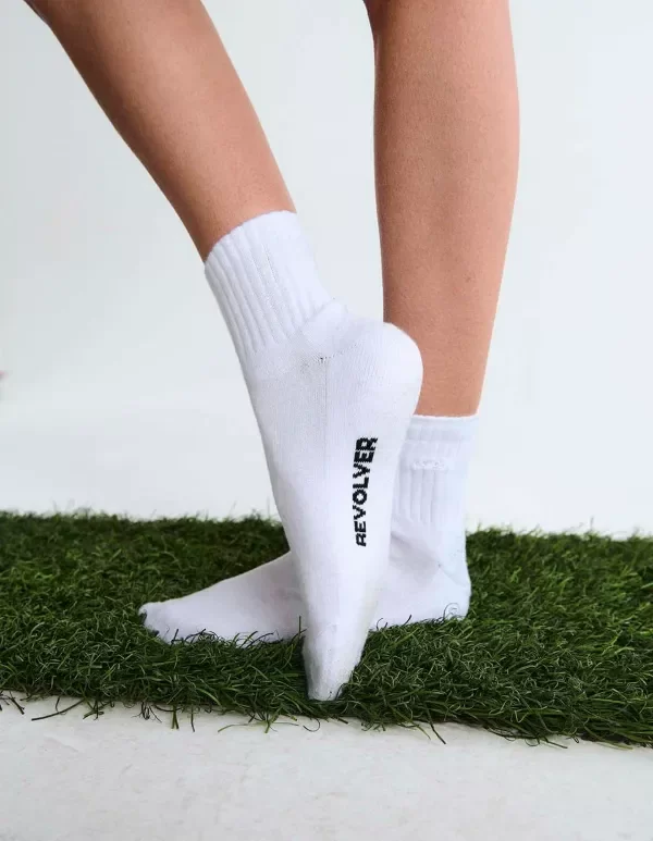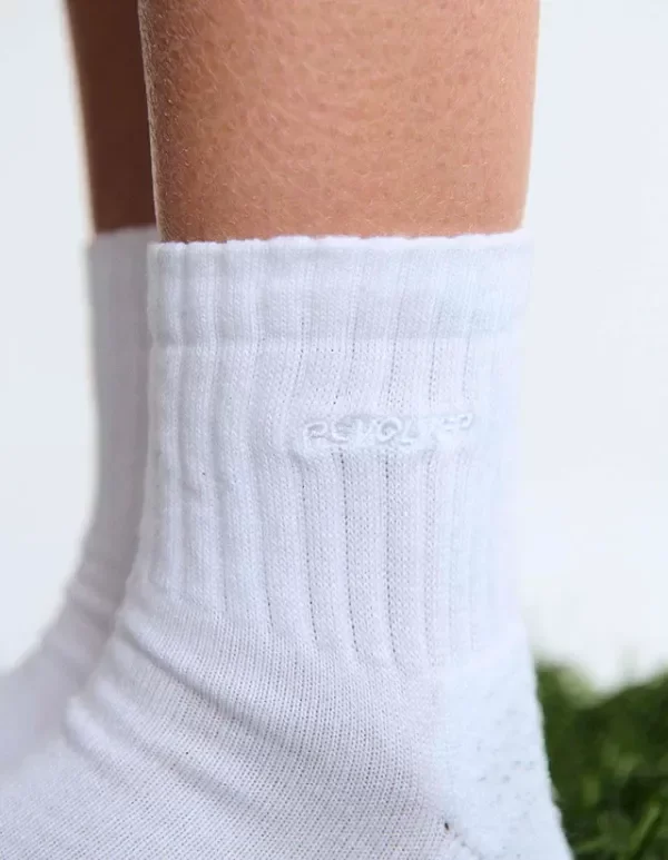 Soquete con media toalla en interior, logo en pie y bordado personalizado en caña.