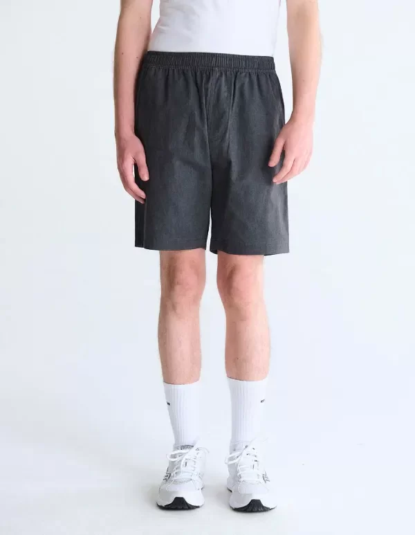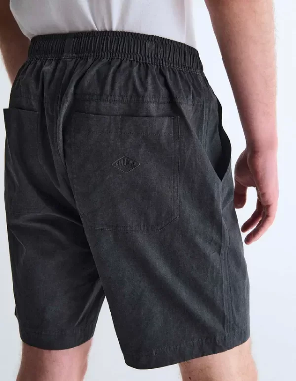 Bermuda de algodón con proceso de teñido y desgaste de color en prenda. Con cintura elástica y cordón de ajuste interno, bolsillos delanteros laterales y bolsillos plaque en trasero con bordado personalizado .