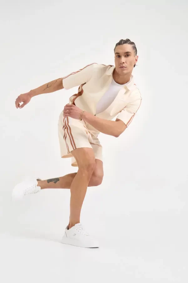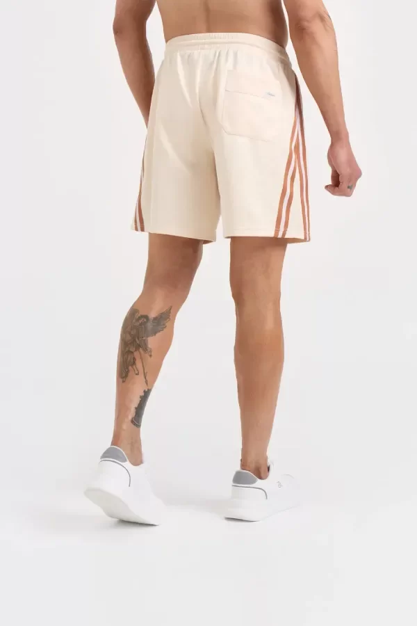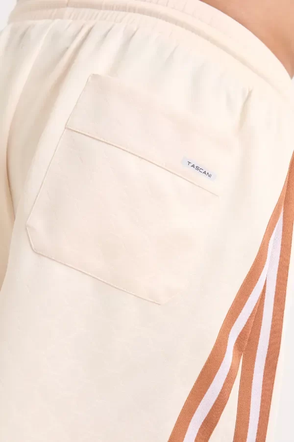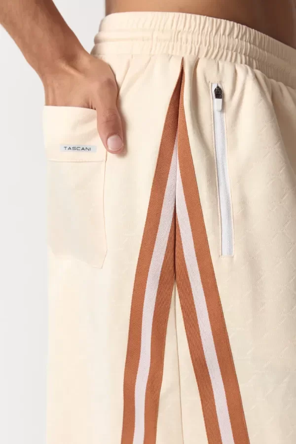 Short de corte holgado largo hasta la rodilla, confeccionado en jersey grueso con monograma Tascani grabado. Tiras en diagonal en laterales y cintura con elástico y cordones con punteras metalicas. Comunicación de marca con logo estampado puff en blanco