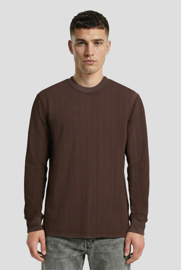Buzo cuello redondo en textil diferenciado