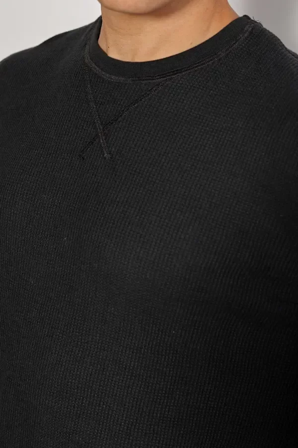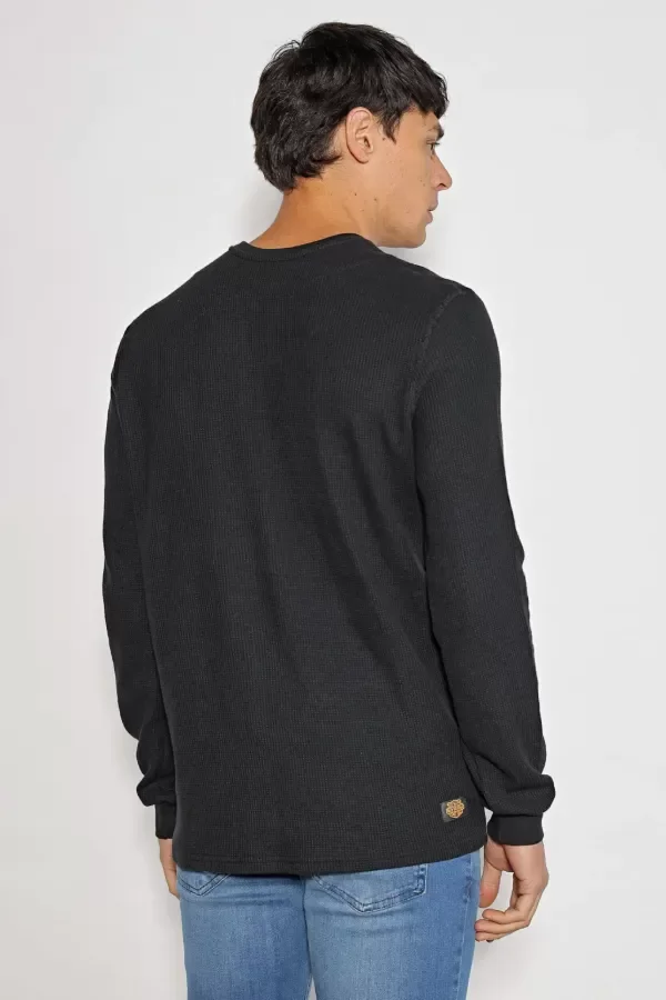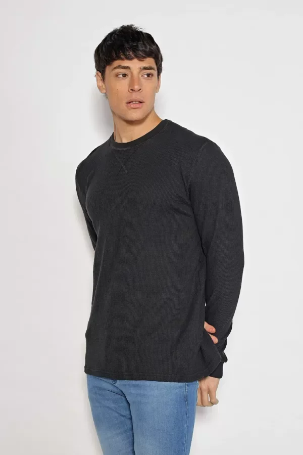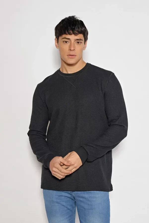 Buzo escote redondo con detalles de bordador al tono. Confeccionado en wafle puro algodón.