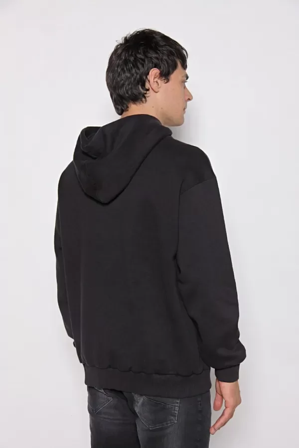 Buzo oversize confeccionado en frisa de algodón, ideal para brindar abrigo y confort en el uso diario. Tiene capucha y bolsillo canguro sin costuras, logrando un diseño limpio y moderno. Su bordado con relieve al tono aporta un detalle distintivo y elegante. Su calce es holgado lo hace una prenda cómoda, perfecta para un look urbano con estilo.