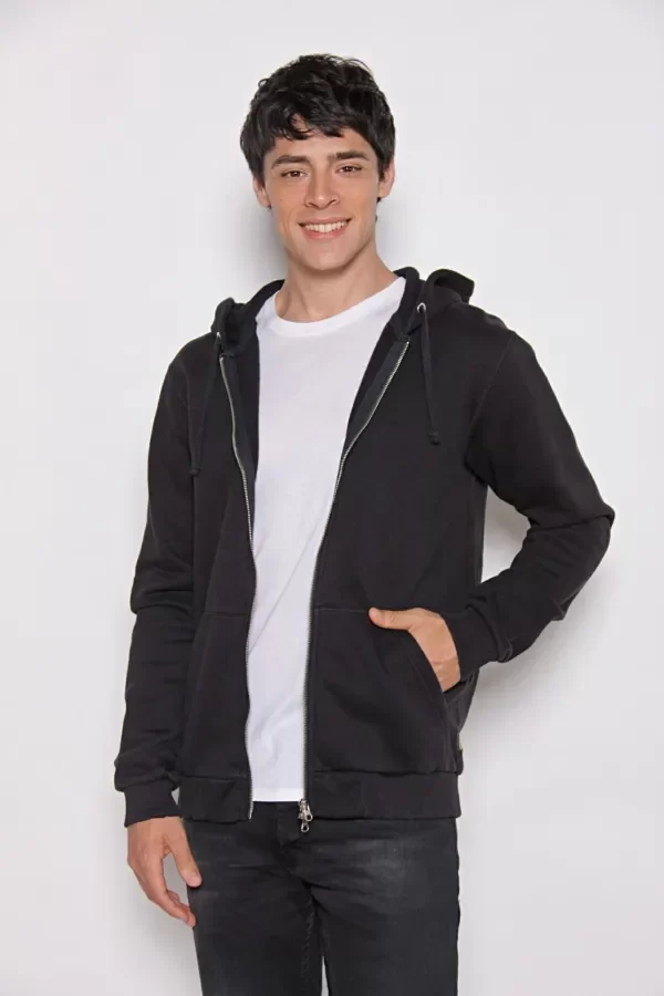 Campera de estilo urbano, confeccionada en frisa. Cuenta con bolsillo canguro, capucha regulable y cierre metálico YKK, combinando diseño, funcionalidad y confort. Sus detalles al tono y terminaciones realzan su estética moderna. Su calce regular, lo hace una prenda cómoda y práctica para el día a día.