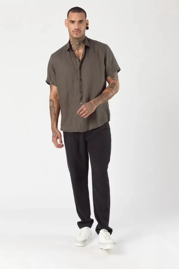 Camisa de lino Mc Omi Gris Topo Tascani