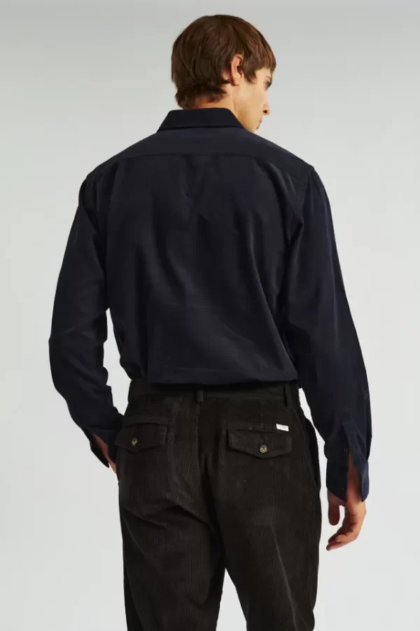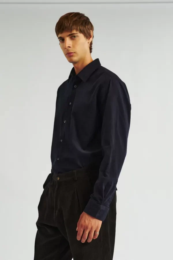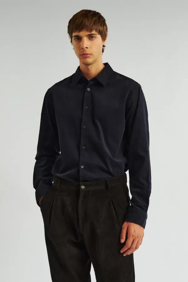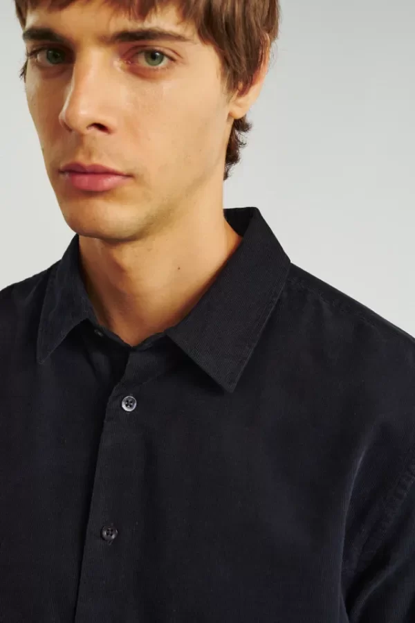 Camisa de calce regular con cuello italiano confeccionada en corderoy liviano. Botones al tono.