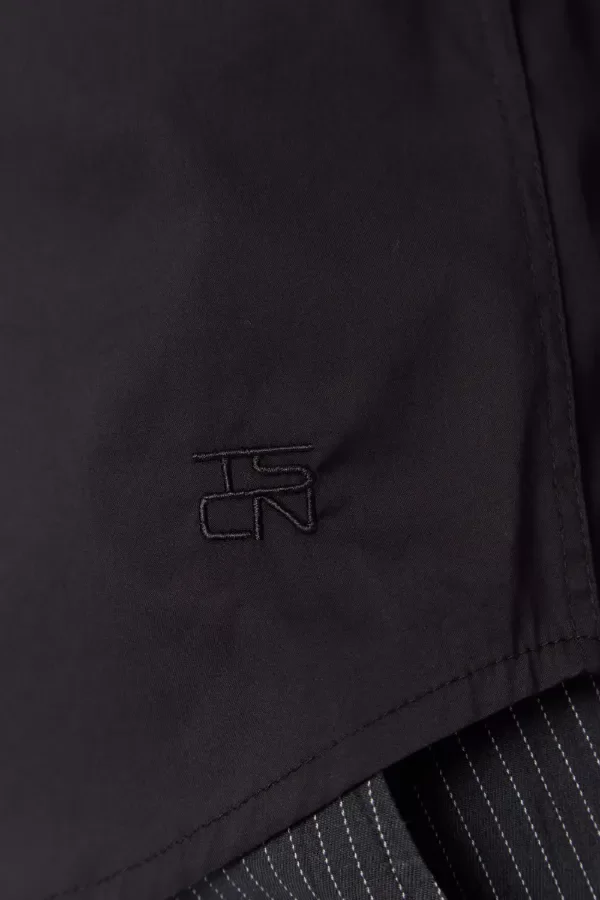 El diseño clásico con cuello estructurado y botones frontales la hace ideal tanto para ocasiones formales como para looks más relajados y sofisticados. Detalles como las mangas remangadas y la etiqueta bordada en el lateral refuerzan su estilo contemporáneo y versátil.