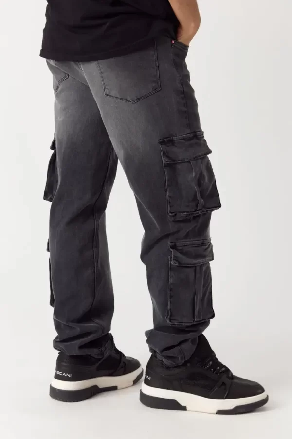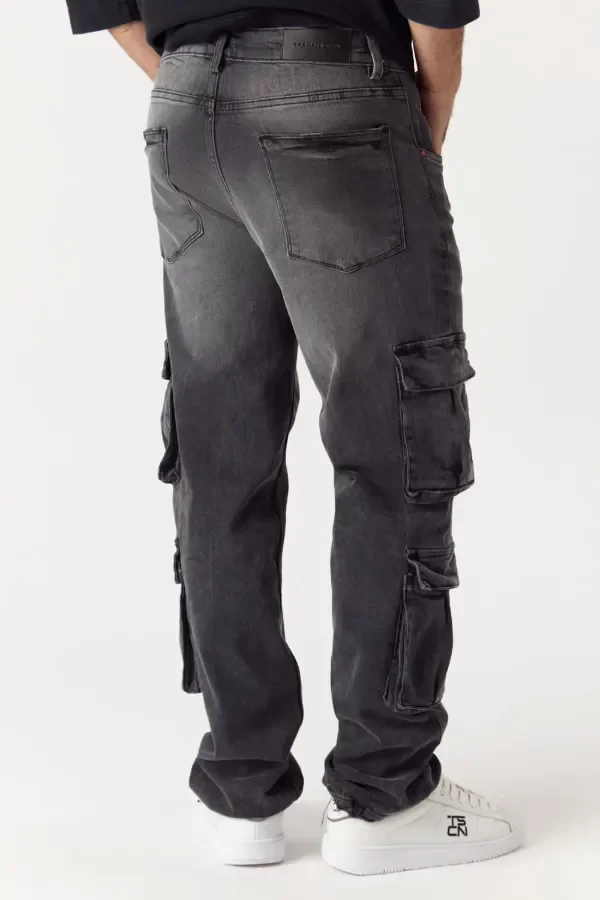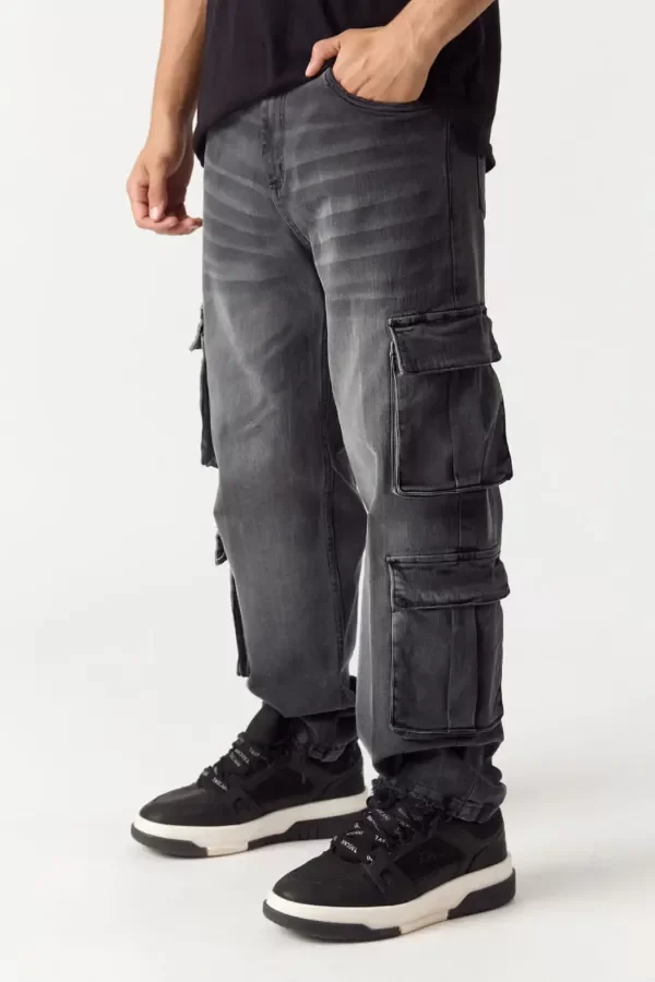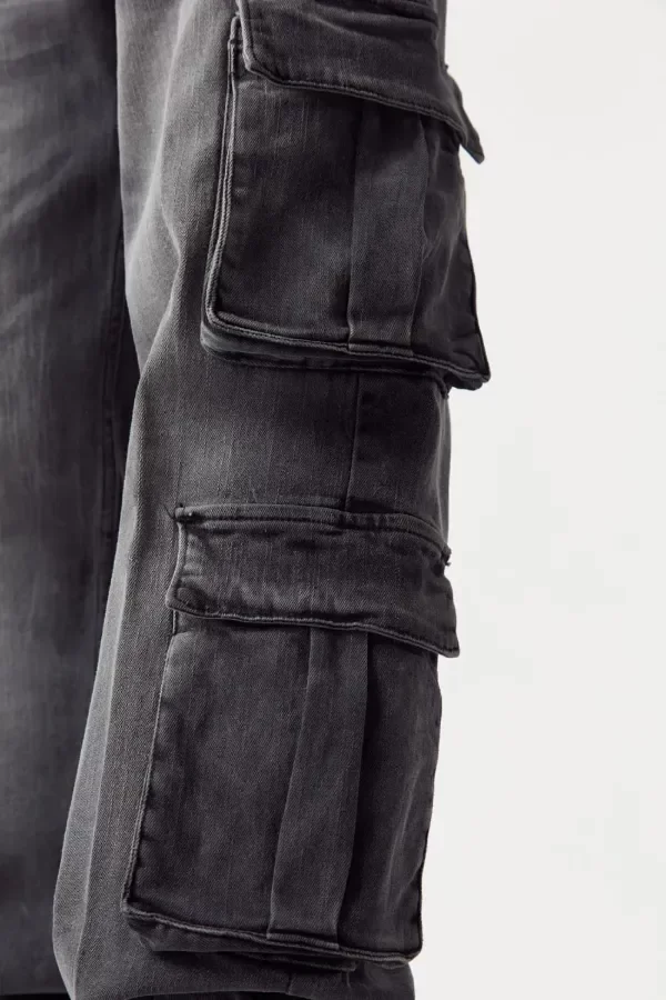 El lavado gris oscuro con efecto desgaste y bigotes delanteros aporta un look vintage y auténtico. Los múltiples bolsillos laterales le suman practicidad y estilo utilitario, ideal para los que buscan un jean diferente y cargado de personalidad.