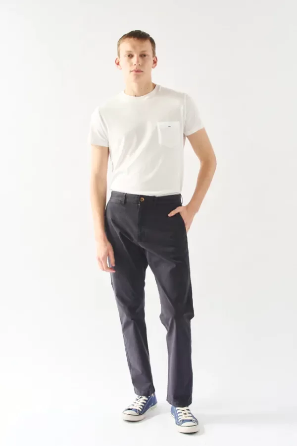 Pantalón tipo chino, calce Clásico. Cierre niquel. Botones marmolados.