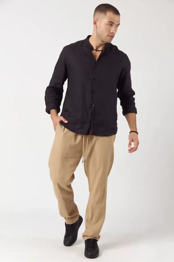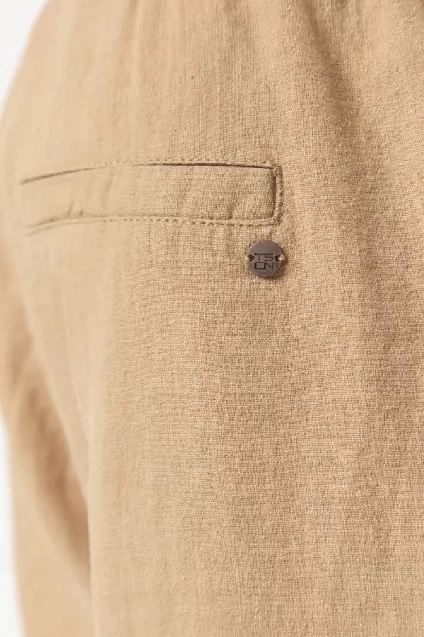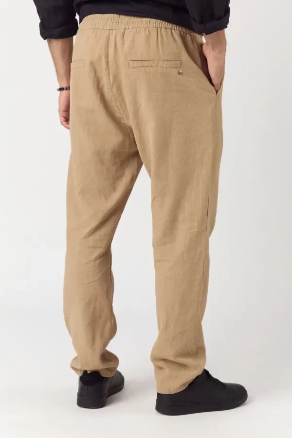 Pantalon de tejido lino premium importado. Cintura con elástico y cordones. Avios personalizados con el logo de la marca.