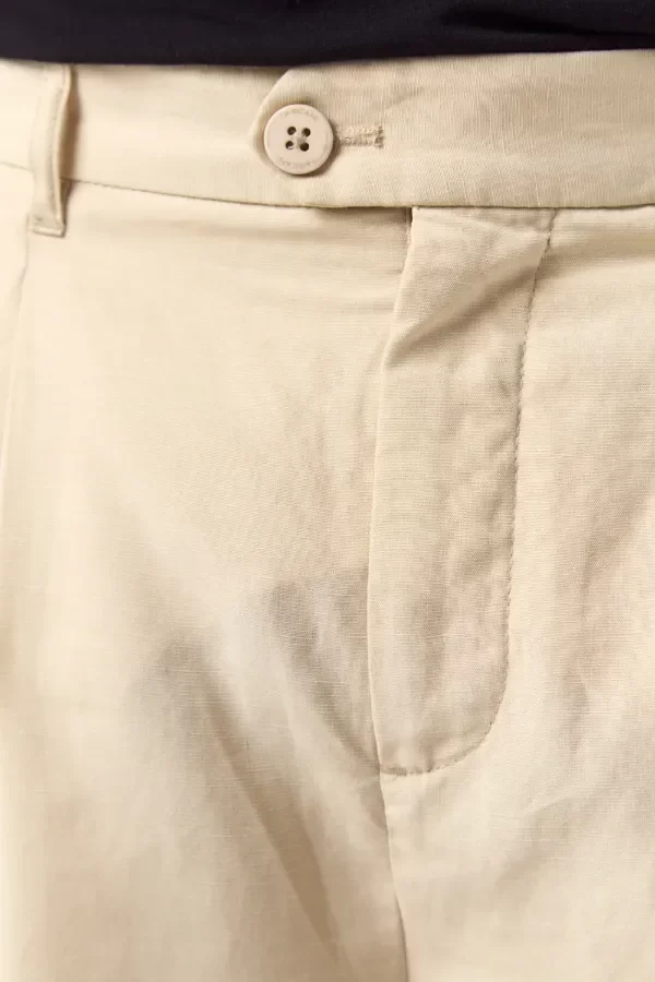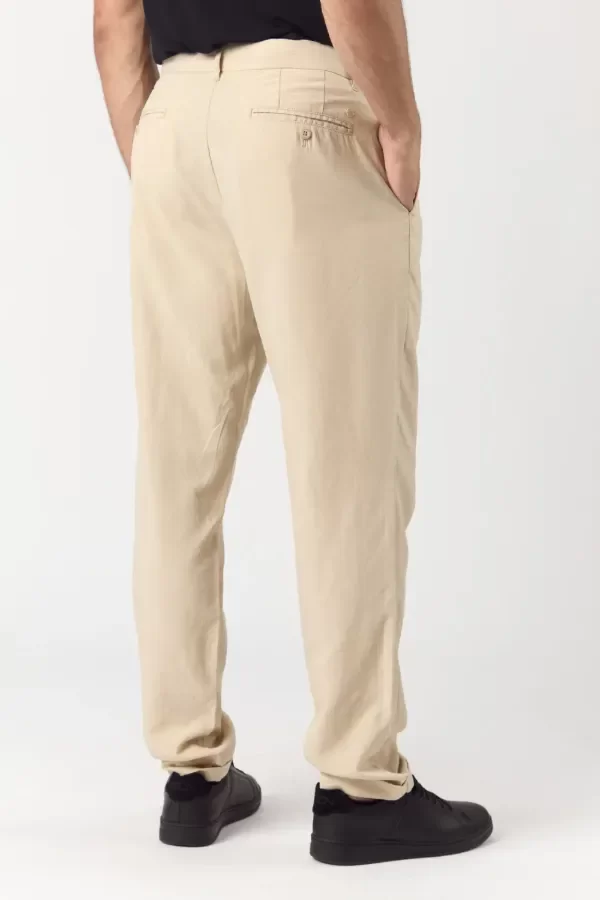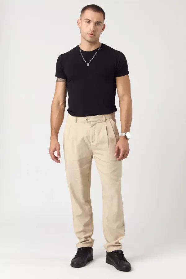 el Percio Arena combina la elegancia del pantalón de vestir con una confección responsable y materiales de alto nivel. Su corte con pinzas y caída relajada aporta estructura sin rigidez, mientras que la mezcla de lino y fibras vegetales ofrece una experiencia de uso liviana, suave y naturalmente transpirable.