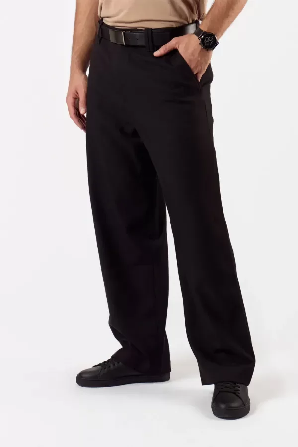 Pantalón de vestir sastrero premium importado en color negro, diseñado para ofrecer una silueta moderna con un enfoque relajado. Su estética limpia y sofisticada lo convierte en una prenda versátil que se adapta tanto a looks formales como a combinaciones más casuales. El calce relax aporta comodidad sin perder la elegancia característica de la sastrería.