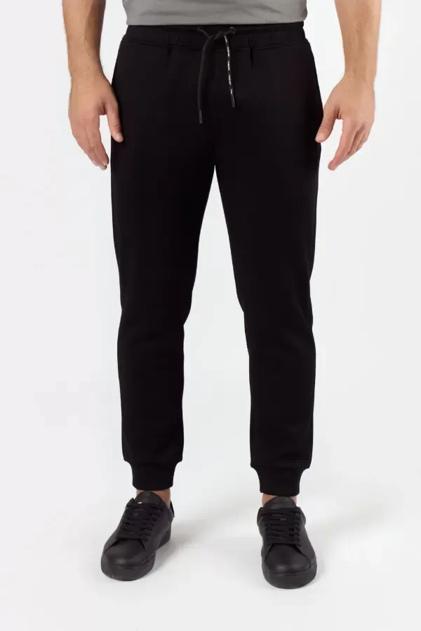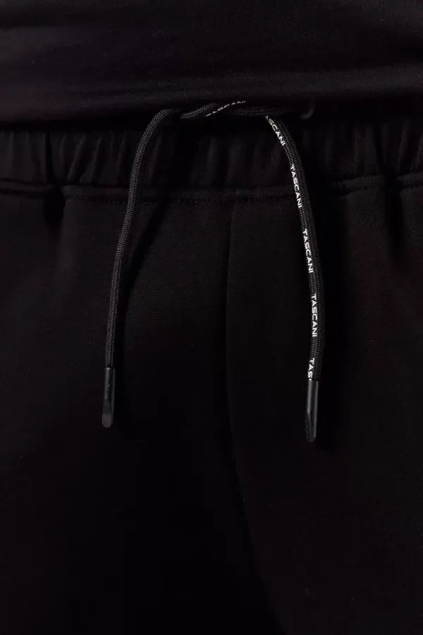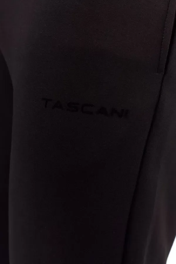 Jogger de calce regular, confeccionado en tela técnica de tacto suave en color negro. Ajuste elastizado con cordón circular y punteras personalizadas a tono. Presenta bolsillos en laterales y tipo plaque en espalda. Comunicación de marca con estampa de logo "Tascani" en pierna izquierda con técnica flock (afelpado) a tono.
