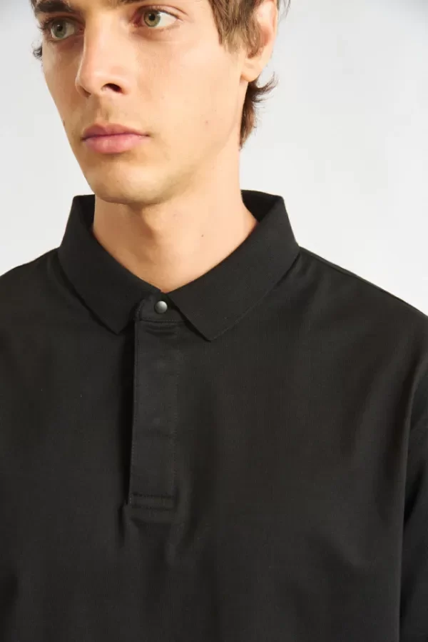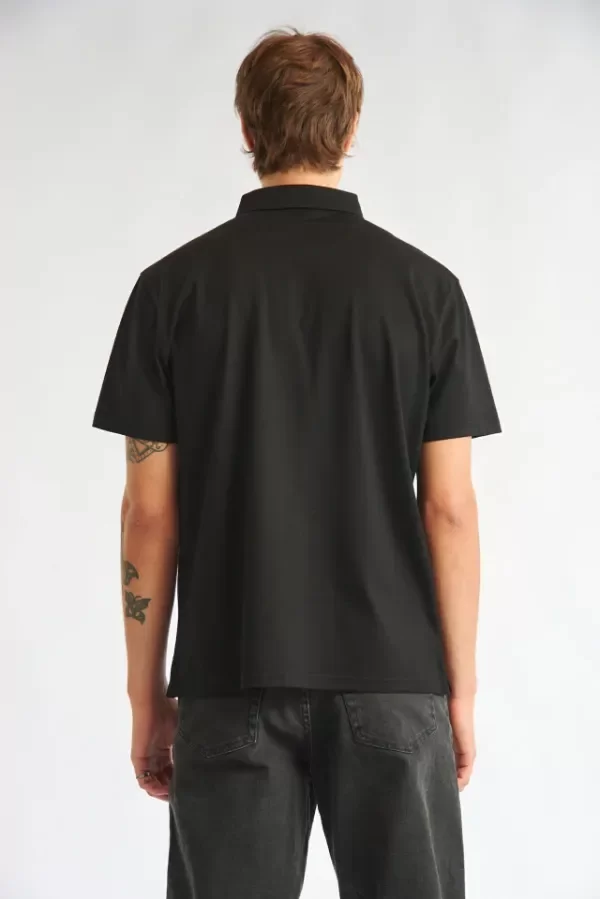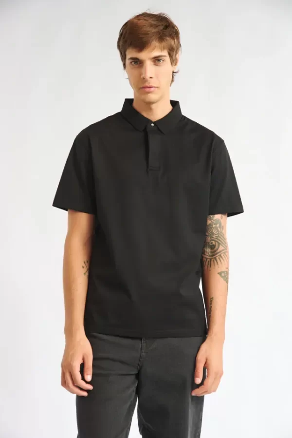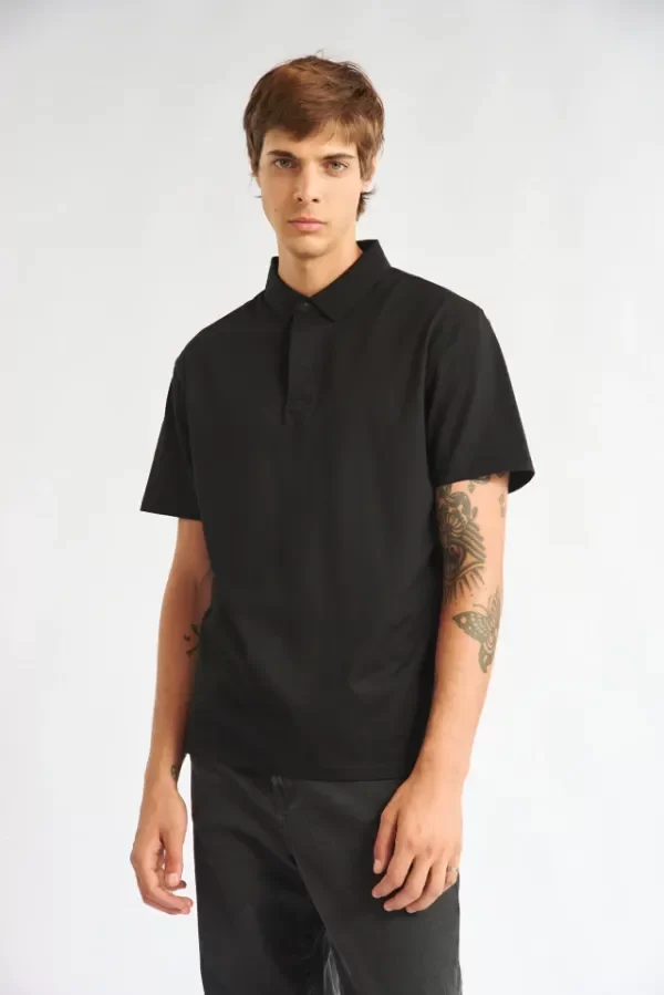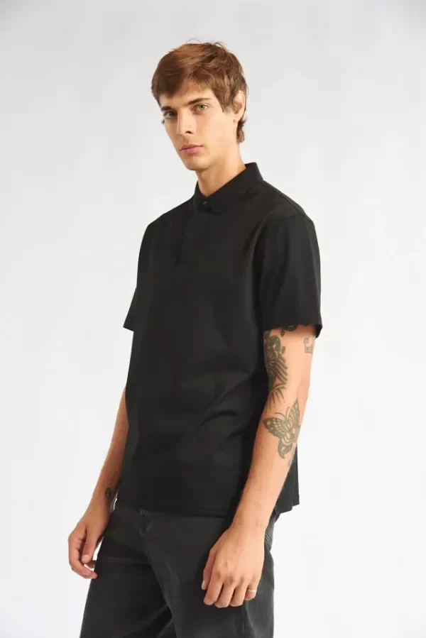 Chomba manga corta con cuello de tejeduría con cartera escondida y broche snap al tono.