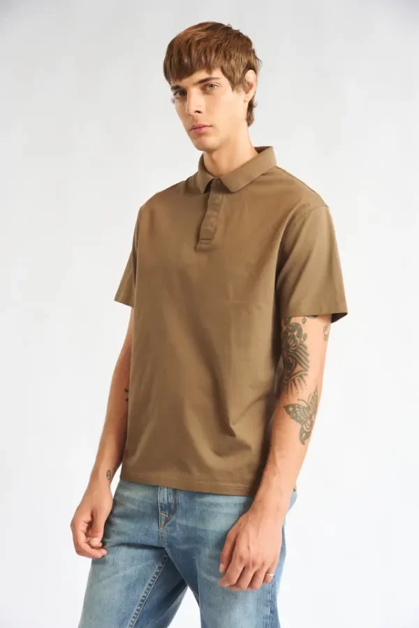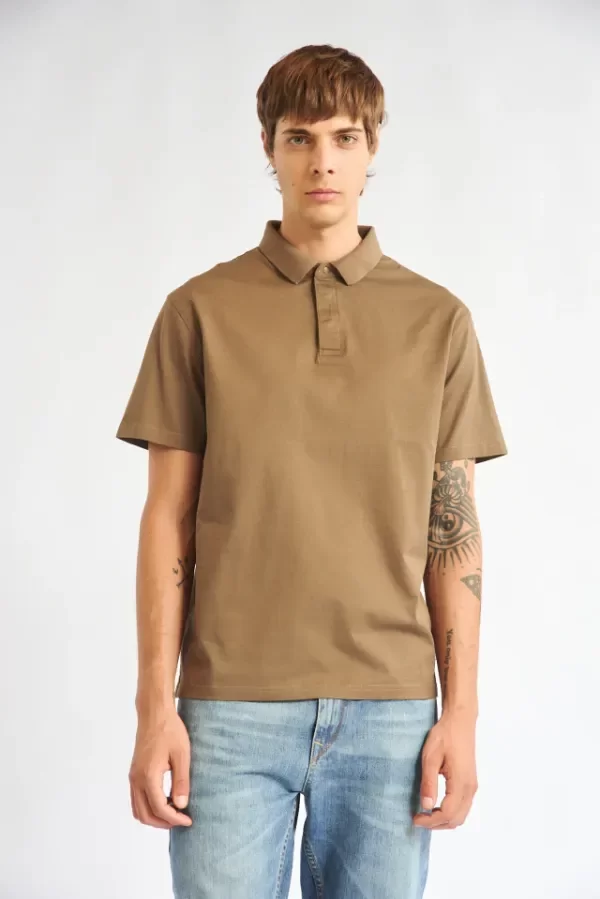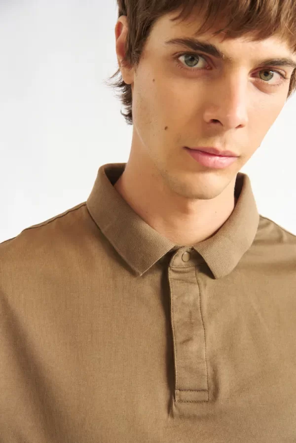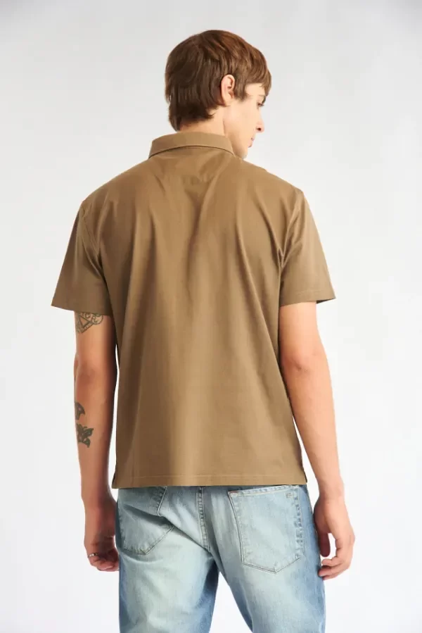 Chomba manga corta con cuello de tejeduría con cartera escondida y broche snap al tono.