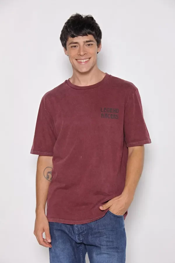Remera oversize estampada escote redondo, mangas cortas, con cuello ribb al tono. Confeccionada en jersey de puro algodón, con un proceso artesanal donde se le otorga un color más vibrante y diferenciado. En el frente y espalda lleva una estampa sin tacto. Su calce es holgado.