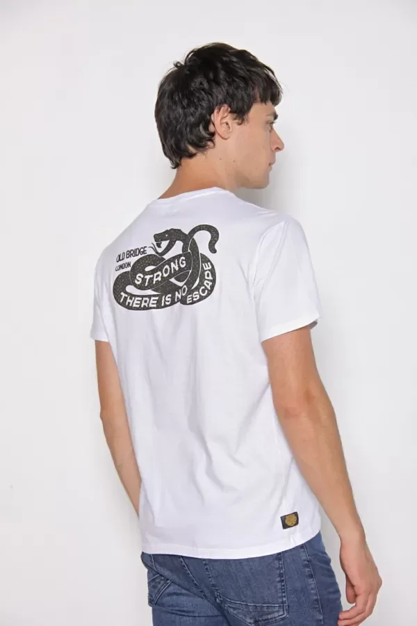 Remera estampada de escote redondo y mangas cortas, confeccionada en jersey de puro algodón. Presenta cuello en ribb al tono que acompaña el diseño. En la espalda incorpora una estampa central con textura que suma carácter y un detalle distintivo a la prenda. Su calce regular ofrece comodidad y la convierte en una opción práctica para el uso diario con un estilo urbano actual.