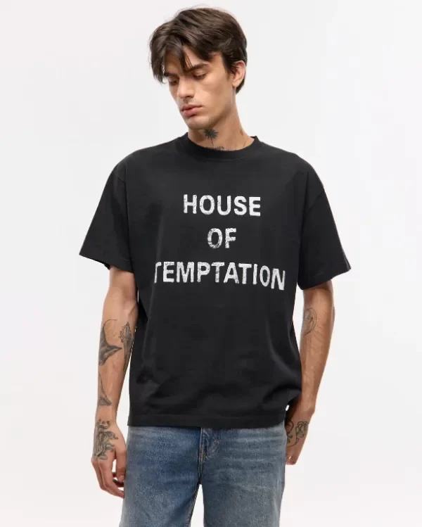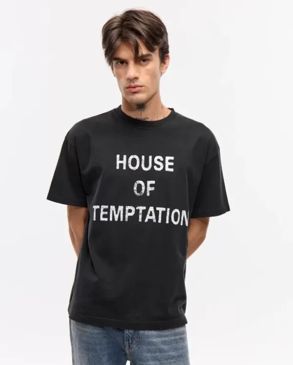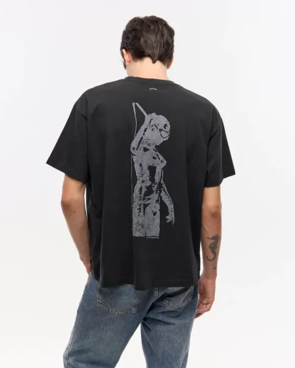 Remera manga corta de cuello redondo y calce oversize en jersey de algodón. Teñido y gastado en prenda. Estampa en delantero y en espalda. Posee grifa de marca en la espalda..