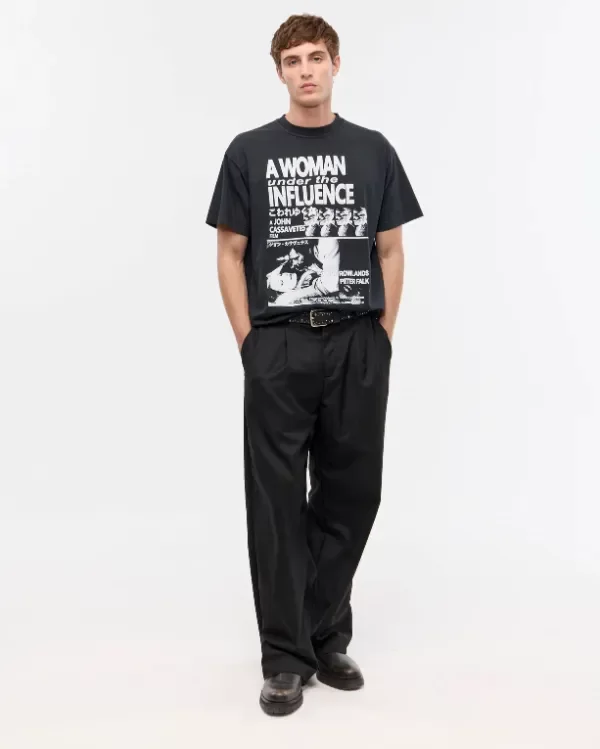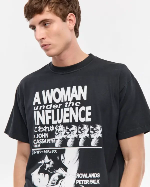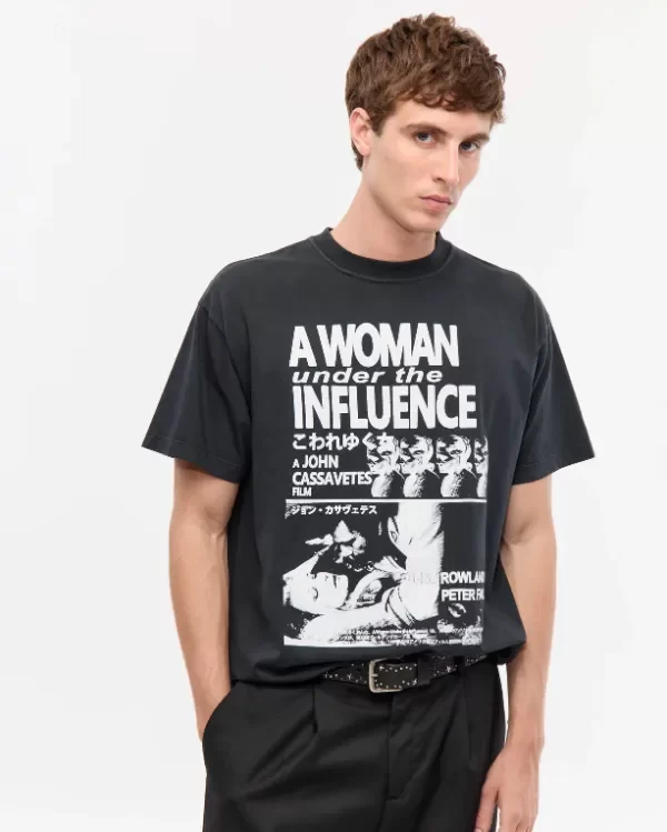 Remera manga corta de cuello redondo y calce oversize en jersey de algodón. Teñido y gastado localizado en prenda. Estampa ´A WOMAN UNDER THE INFLUENCE´en delantero. Posee grifa de marca en la espalda