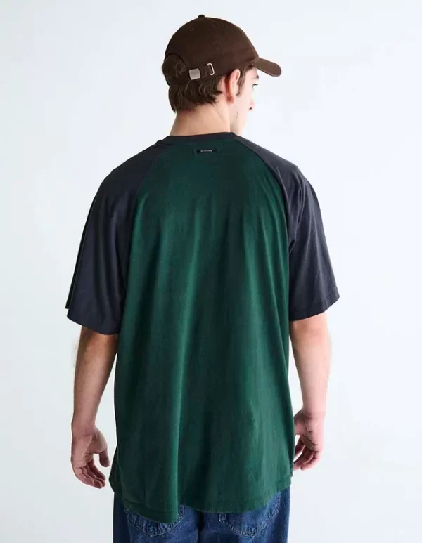 Remera mangas ranglan a contratono, cuello redondo de calce amplio en jersey, con estampa personalizada frontal.