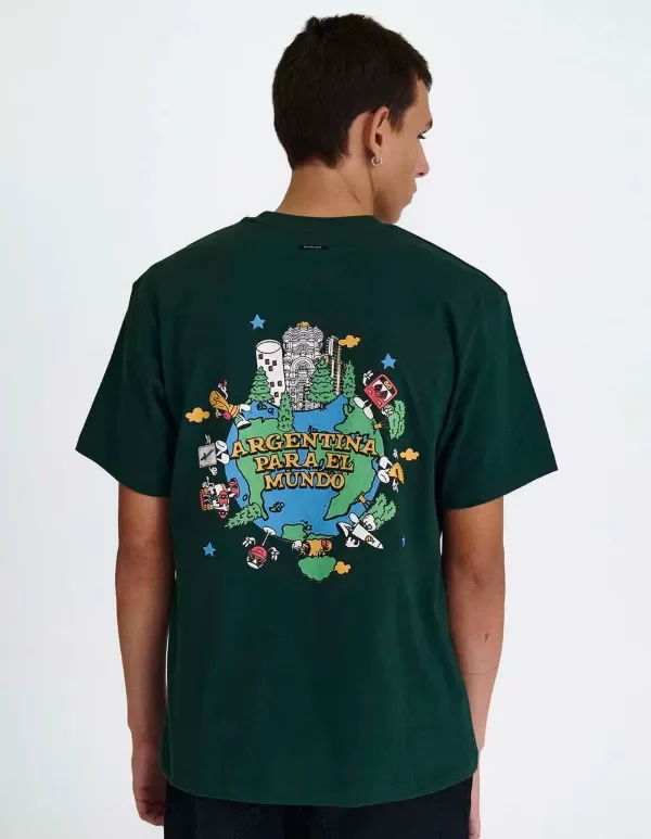 Remera estampada m/c cuello redondo de calce regular en jersey, con estampa al agua personalizada.