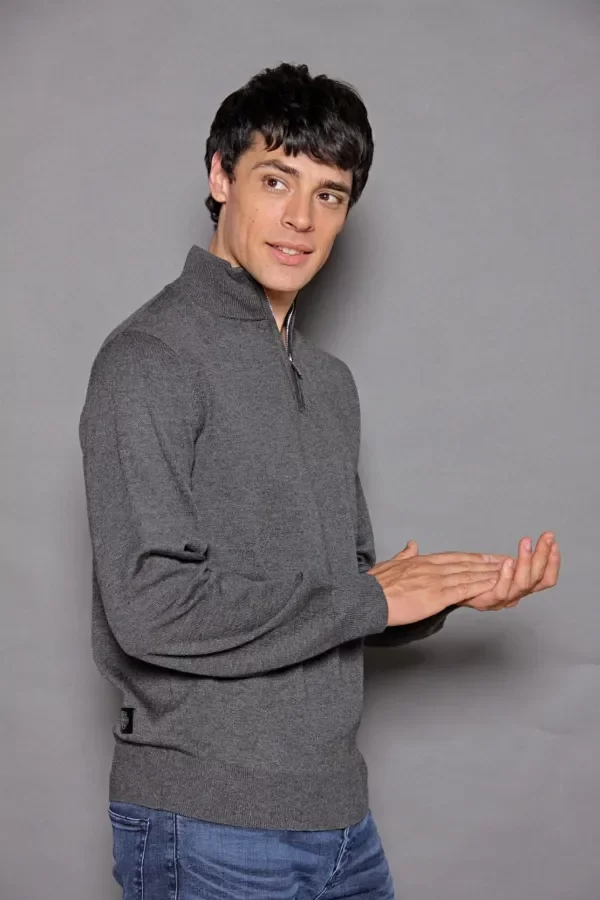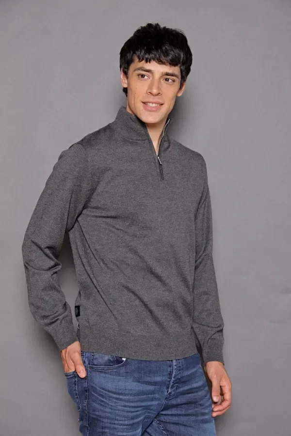 Sweater de cuello alto con cartera y cierre frontal, diseñado para brindar abrigo y comodidad en los días más frescos. Está tejido en punto jersey con hilado que combina lana merino y otras fibras, logrando una prenda suave, resistente y confortable. Su peso intermedio lo convierte en una opción versátil, ideal para acompañar el uso diario con un estilo urbano actual.